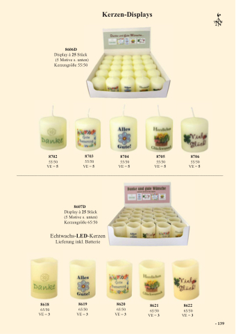 8607D Display ‡ 25 St¸ck (5 Motive s. unten) Kerzengrˆfle 65/50