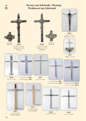 Kreuze aus Edelstahl / Messing Weihkessel aus Edelstahl